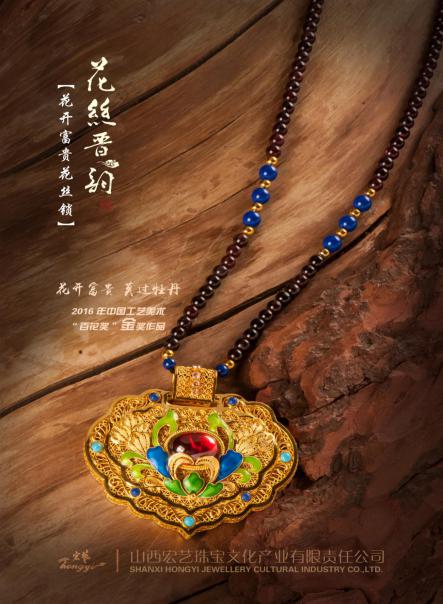 公司制作的《花絲晉韻》系列產(chǎn)品,既傳承創(chuàng)新了精湛的花絲鑲嵌工藝,又弘揚(yáng)了三晉傳統(tǒng)文化,并屢獲國家級最高獎項(xiàng)。從1998年開始,山西宏藝先后設(shè)計制作了《鸛雀樓》、《九龍壁》、《圣母殿》和《應(yīng)縣木塔》等大型足銀鍍金花絲擺件;ńz晉韻系列產(chǎn)品面市后,獲得了社會各界的良好反響和高度贊譽(yù)。純金花絲如意在2010年中國(深圳)第六屆國際文化博覽交易會上獲得“中國工藝美術(shù)文化創(chuàng)意獎”金獎;《晉祠圣母殿》、《應(yīng)縣木塔》榮獲2012年中國工藝美術(shù)“百花獎”金獎;《點(diǎn)銀藍(lán)九龍壁》獲2014年中國工藝美術(shù)“百花獎”金獎!稇铱账隆、《足銀鍍金花絲鳥籠》、《花開富貴花絲鎖》獲2016年中國工藝美術(shù)“百花獎”金獎。